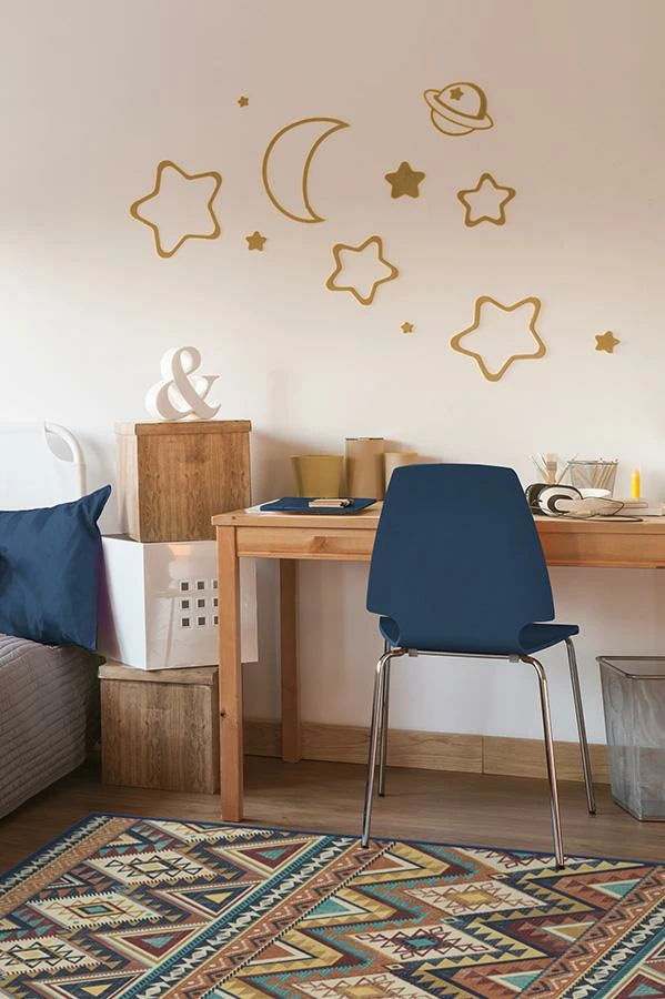 The Southwestern style of our Adobe Multicolor rug showcases repeated rows of geometric patterns in a fresh earth tone color palette.
