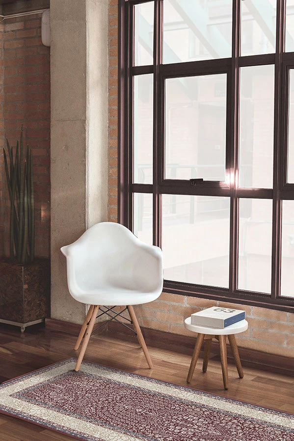 With a pattern inspired by traditional bone inlay designs, the Afshan Merlot features a cream border accented by a deep red interior.
