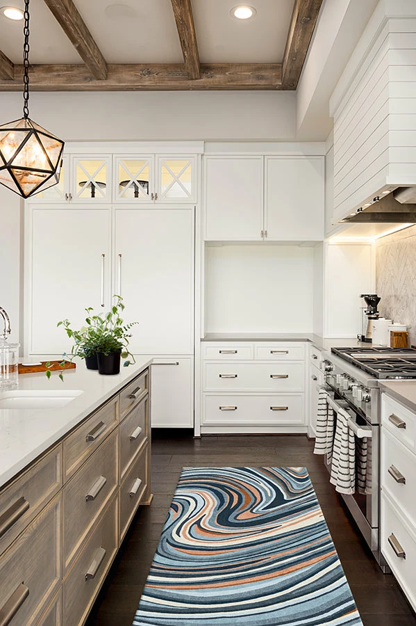 Moved by the magnificent micro crystals found inside a quartz gemstone, our designers created this stunning Agate Arctic Blue rug. Its mesmerizing, banded stripes flow together in gorgeous colors of blues, rose gold, terracotta and eggshell. Style this nature-inspired accent piece alongside your modern, contemporary or coastal furnishings.