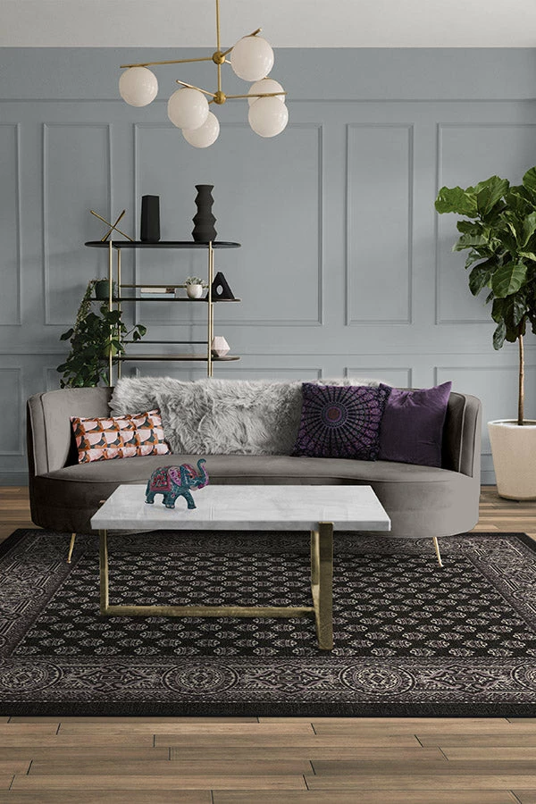 Beautifully boho. Our Anna Sui Belle Epoche Charcoal & Lavender Rug takes inspiration from the fashion designer’s Fall 2009 collection, inspired by the bohemian lifestyles that emerged from The Belle Époque. The design features a classical print in shades of purple and pearl, set atop a black background with a playful border. Made from our water-resistant, stain-resistant, and machine-washable low-pile Chenille material.