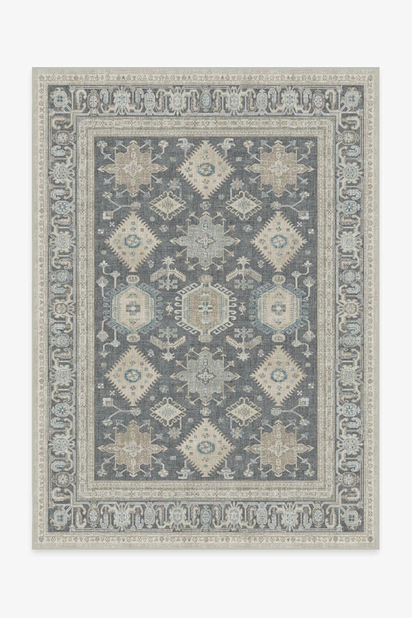 Add a touch of worldly influence to your home with the Cambria Abalone Rug. The intricate pattern of this grey Persian rug design features hues of greige, sage green, and teal with cream accents.