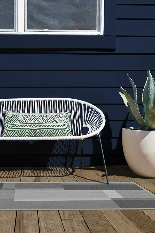 Minimal yet impactful. Our Campo Grey Rug is inspired by the works of artist Josef Albers and features rectilinear shapes in multiple shades of grey. The extra-durable, machine-washable material is perfect for both outdoor and indoor use, especially high-traffic areas and those exposed to the elements.