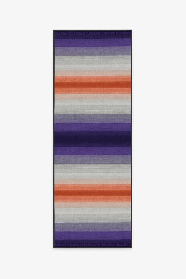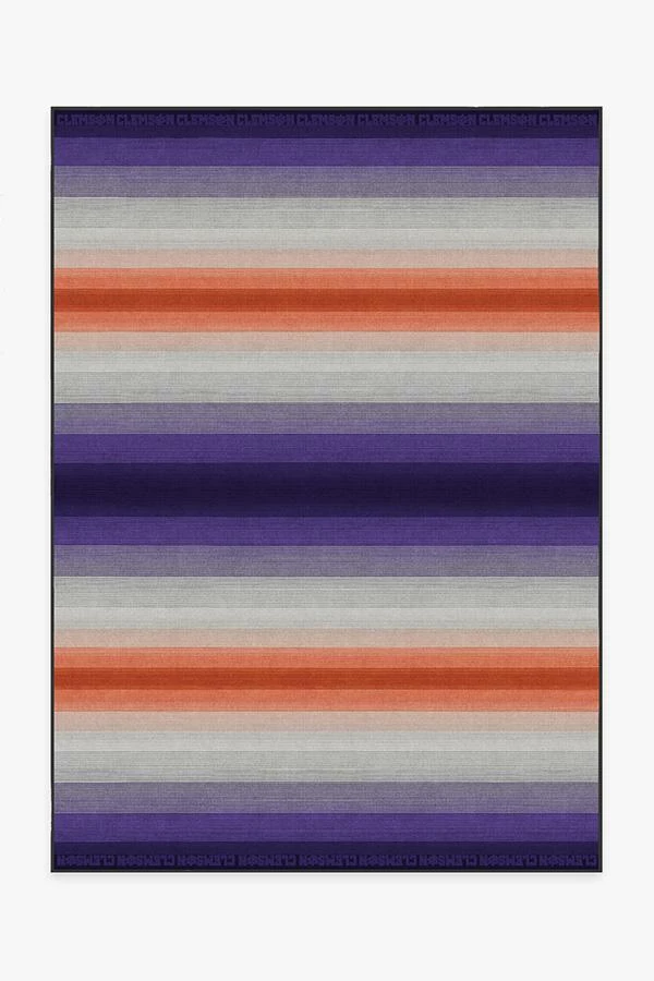 Tiger fans, make your floor roar! This Clemson rug features vibrant ombre stripes in the school’s signature colors of purple and orange, blended with grey and black. Water-resistant, stain-resistant, and machine-washable. The intellectual property contained on or in connection with this product is the exclusive property of the respective collegiate institution and may not be used without prior written consent.