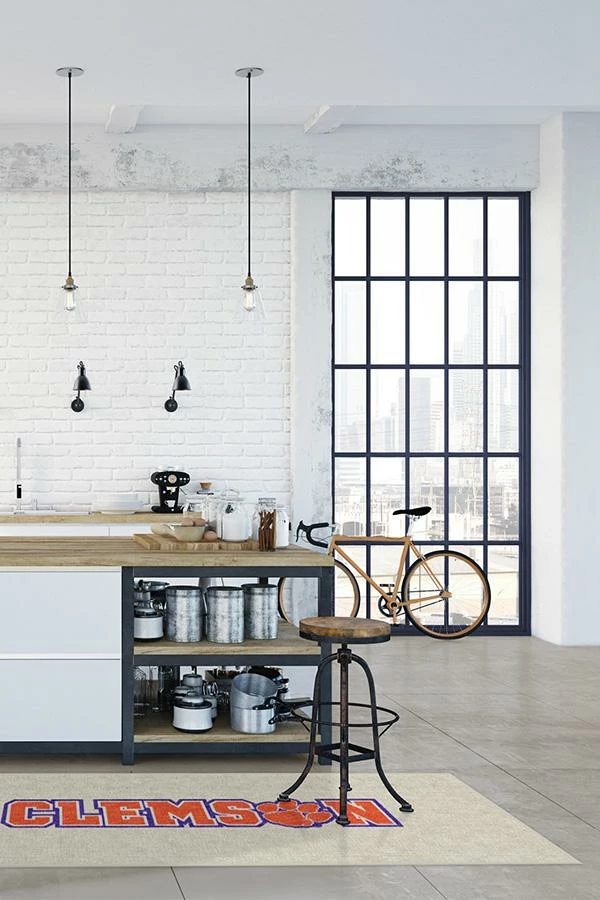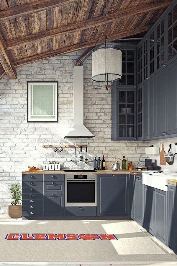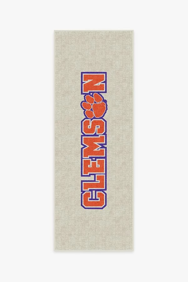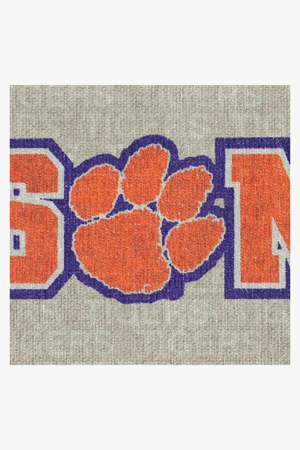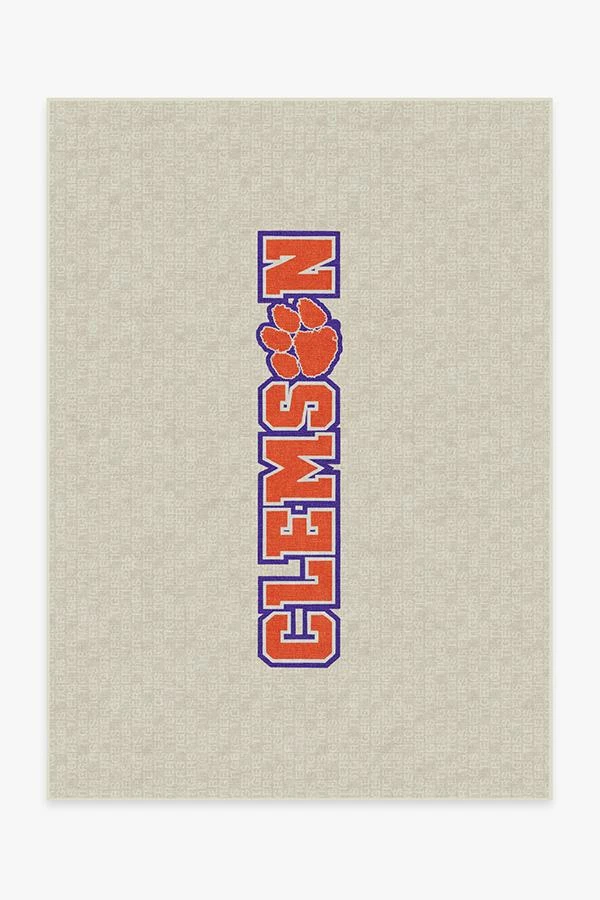 Show off your fierce Tiger spirit! This Clemson rug features the school’s logo in purple and orange centered on a cream background. Water-resistant, stain-resistant, and machine-washable.