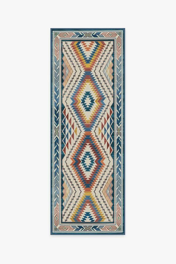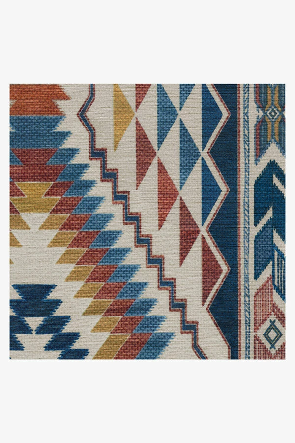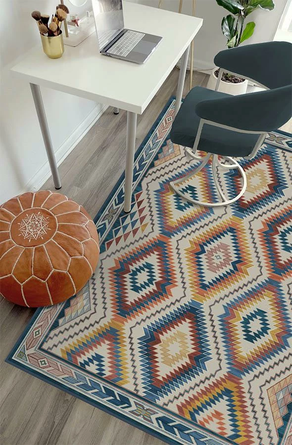 Elevate your home with our Dessa Diamond Polychrome Rug. Randomly shaded diamonds create an ombre effect, while zigzag and triangle border adds pizzazz to the overall look. Colored in bold tones of steel blue, gold, and terracotta, this geometric rug dials up the energy of any room in your home.
