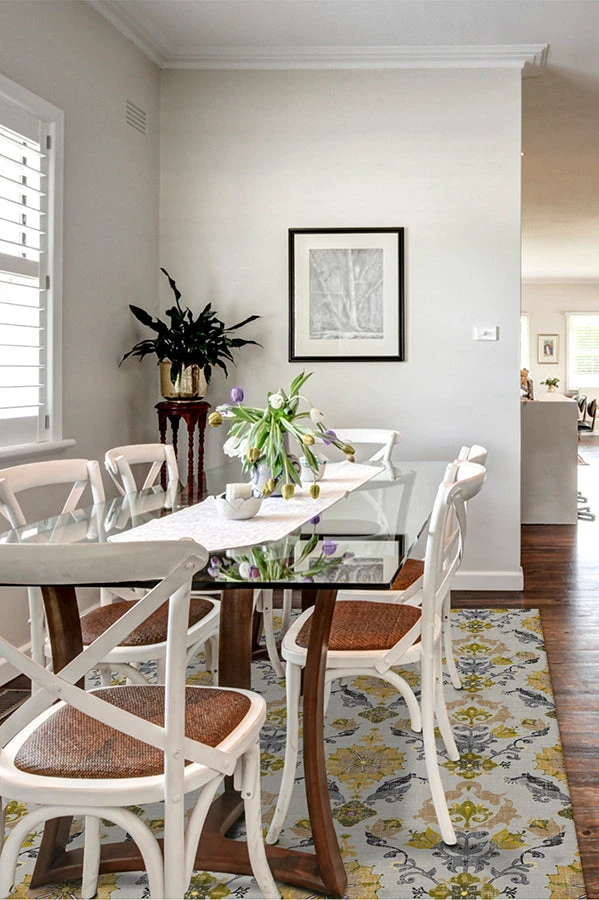 Bring a touch of nature to your home with our Floral Damask Mimi Yellow rug. The subtle, multi-colored mix of silver, moonsand, gold, olive green, and yellow features a unique wildflower-patterned motif that’s both regal and elegant. Perfect for decorating styles from shabby chic to classic, to country or traditional.