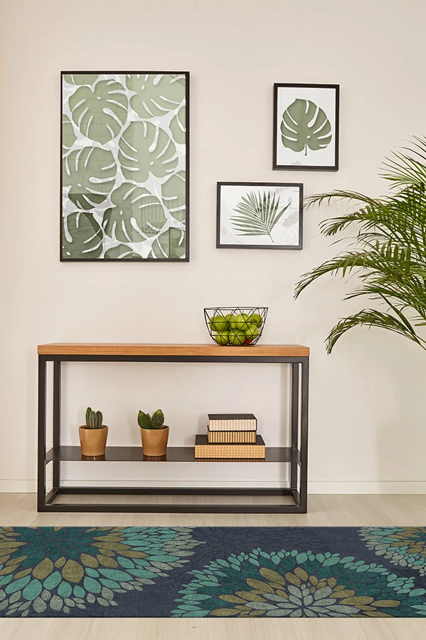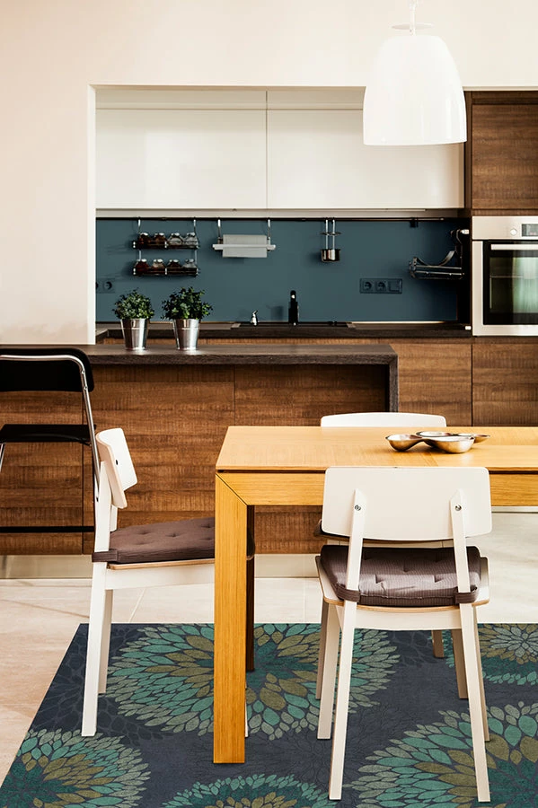 Elevate your home’s interior with our Floral Medallion Navy Rug. Rendered in teal, sage, olive, and turquoise on a navy and midnight blue background, this floral rug beautifully complements any urban or suburban-style home.