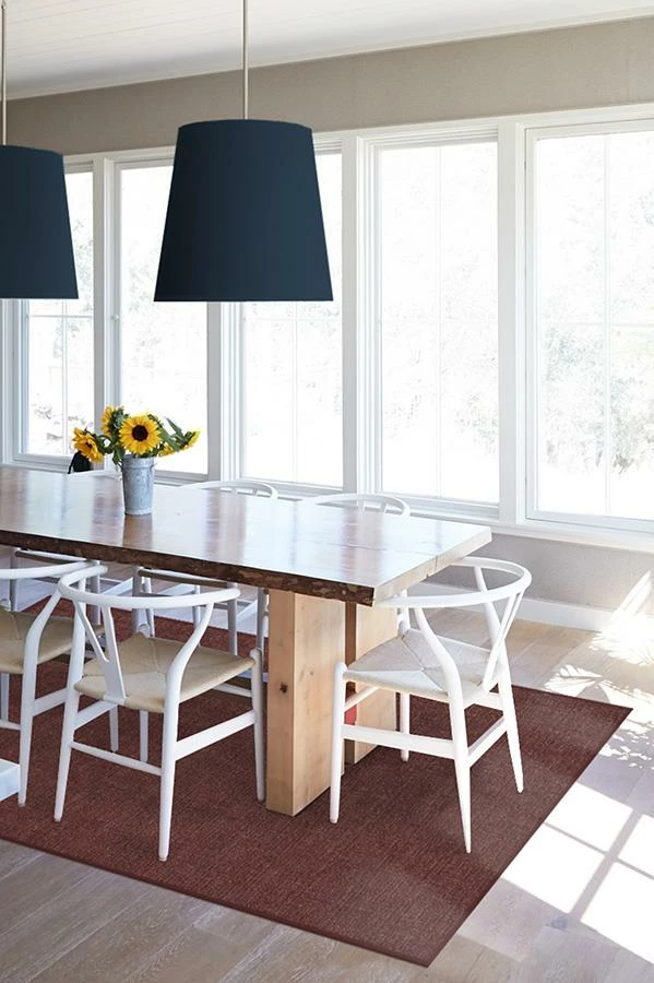 Our Heathered Solid Burgundy Rug pairs rich hues of farmhouse and amber red with a woven textured motif for a solid look that’s warm, elegant, and easy to style.