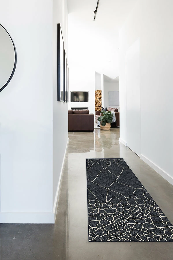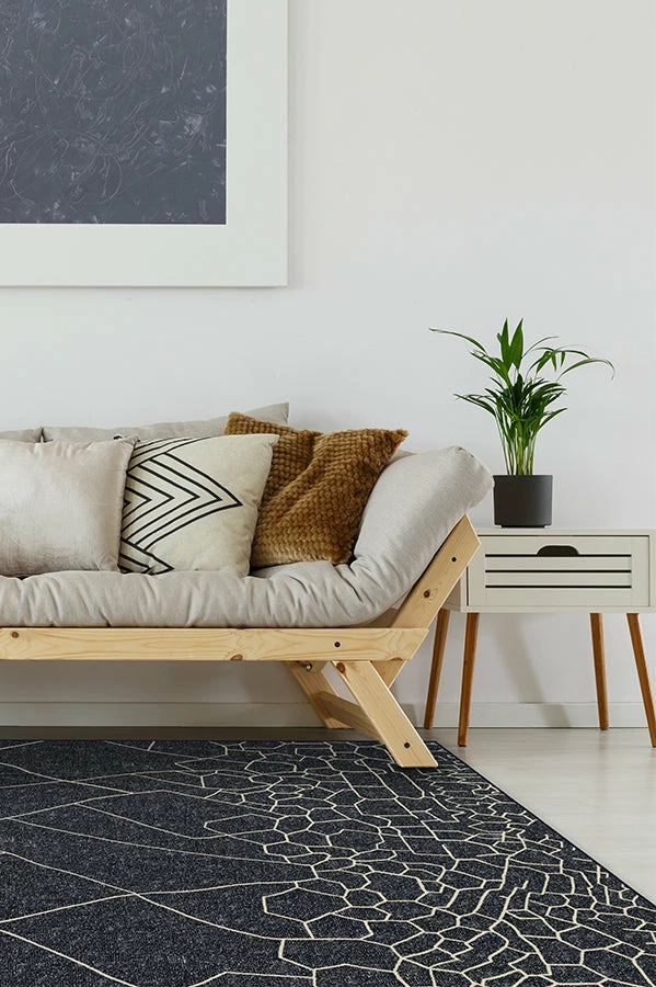 Style your home with the richness of Moroccan-inspired design by laying down our Illi Navy rug. Mimicking the shapes of the Atlas Mountains, this fine-lined, abstract motif is beautifully highlighted in natural against a background of midnight blue. Brilliantly suited to pair with a wide range of colors in any urban or suburban home interior.