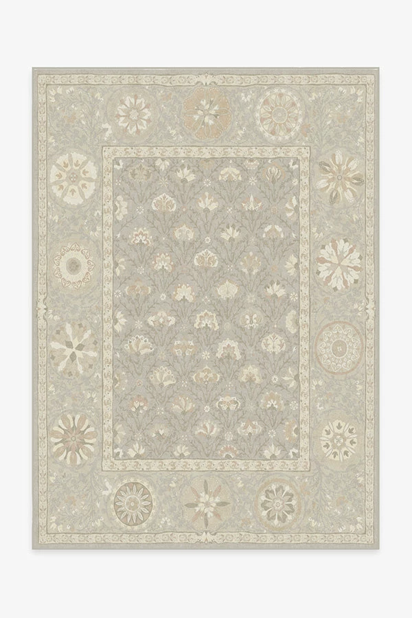 Create a delicate moment in your home’s interior by laying down our Latiff Creme rug. This softly stated motif pays homage to 19th century, Persian rug designs, featuring a band of intricate floral medallions that border a field of fanned florets. Gorgeous hues of dove grey, taupe, cream and ivory make complementing an array of colors effortless in any contemporary, classic or eclectic space.