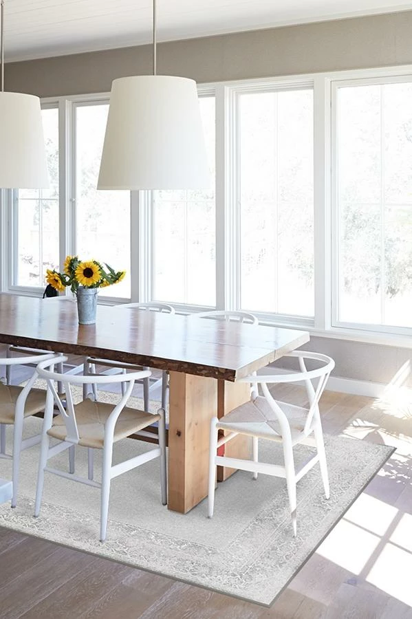 Our Maral Border Vintage Grey rug combines neutral hues of silver and light grey in a a Persian-inspired design that will bring timeless elegance to any room in your home.