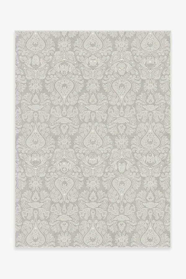 Show off your love of Marvel in a subtle way. Our Marvel Damask Stone Rug has an intricate pattern featuring Super Heroes and symbols done in the original 1960s style in soft grey and off-white. Made from our water-resistant, stain-resistant, and machine-washable low-pile Chenille material.
