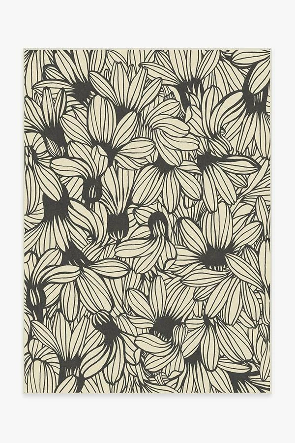 Inspired by the Finnish prints of Marimekko, our Meena Black & White rug features a modern-retro floral motif with bold line work in neutral grey on cream.