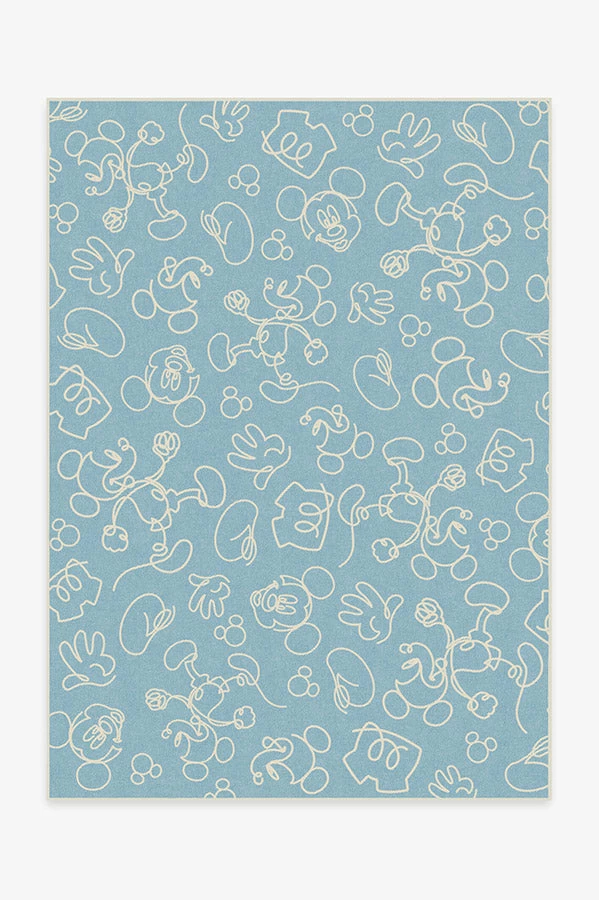 Indulge in hours of playtime with our Mickey Doodles Blue Rug. This fun, Disney-themed baby blue rug features scattered bits of Mickey Mouse, drawn in continuous linework and rendered in grey and sand dollar hues on a backdrop of blue. A whimsical rug to inspire the up-and-coming animator in your home.