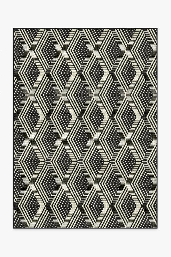 An eye-catching optical illusion. Our Motus Diamond Black Rug is an elaborate statement piece that features tightly aligned geometric diamond patterns tinted in black and light grey to create the look of depth using only lines. The extra-durable, machine-washable material is perfect for both outdoor and indoor use, especially high-traffic areas and those exposed to the elements.