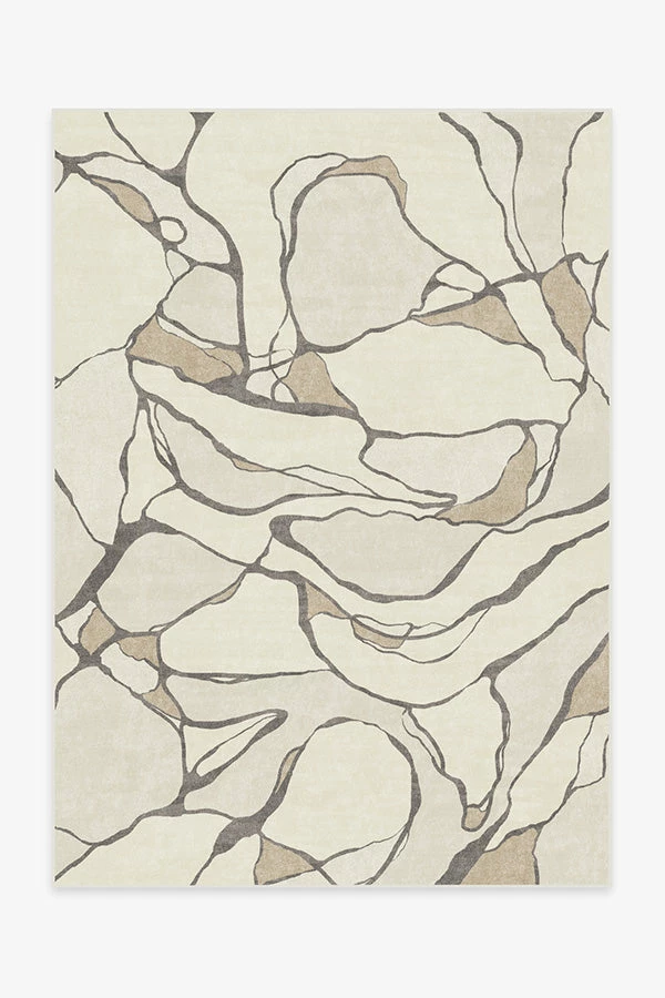 Earthy and understated. Reminiscent of stone, our Nina Takesh Aude Creme Rug features shades of taupe, dark grey, and off-white swirled together in a unique and elegant design. Made from our water-resistant, stain-resistant, and machine-washable low-pile Chenille material.