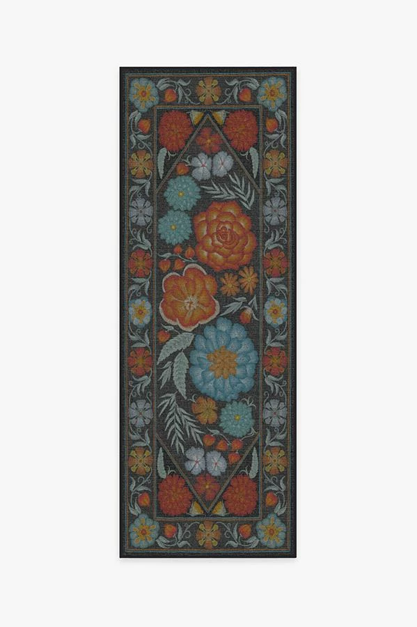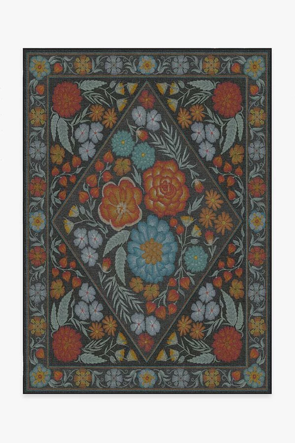 In Spanish, “prado” means meadow; it’s also the inspiration behind the design of our Prado Black Opal Rug. Bright hues of marigold and teal blue pop against the grey background of this botanical motif, with each stitch individually hand-drawn to recreate the feeling of embroidery done by hand. A beautifully rendered rug to enliven any room.