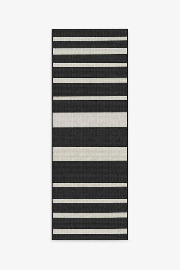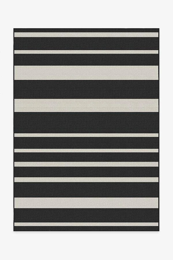Give your space a nautical touch. Our Sailmaker Stripe Black Rug has a combination of thin and thick black and white stripes with a subtle herringbone texture. The extra-durable, machine-washable material is perfect for both outdoor and indoor use, especially high-traffic areas and those exposed to the elements.
