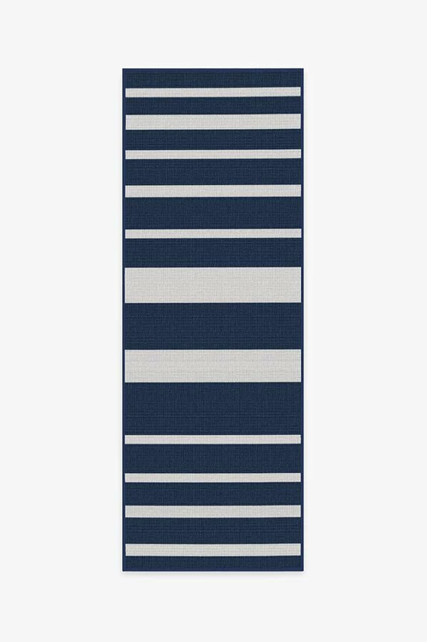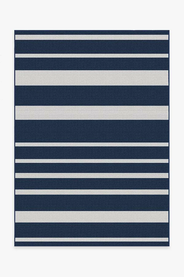 Give your space a nautical touch. Our Sailmaker Stripe Blue Rug has a combination of thin and thick navy blue and light grey stripes with a subtle herringbone texture. The extra-durable, machine-washable material is perfect for both outdoor and indoor use, especially high-traffic areas and those exposed to the elements.