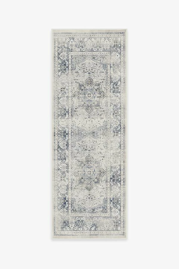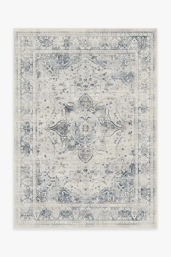 Vintage with a touch of chic. Our Sarrah Blue Quartz Rug features a floral medallion and decorated border in shades of slate and sapphire blue balanced with off-white. The whitewashing effect gives this rug a vintage feel. Made from our water-resistant, stain-resistant, and machine-washable low-pile Chenille material.