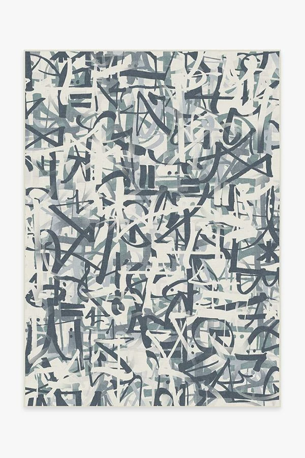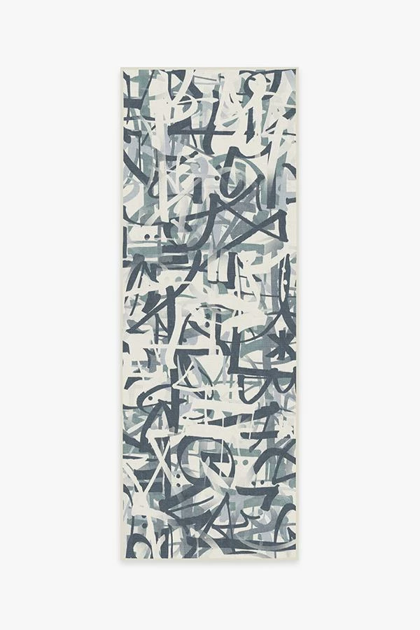 Show off your street smarts with our urban-style, graffiti tag-inspired Scribe Slate Blue Rug, which features edgy and bold markings in various hues of blue and grey on pearl.