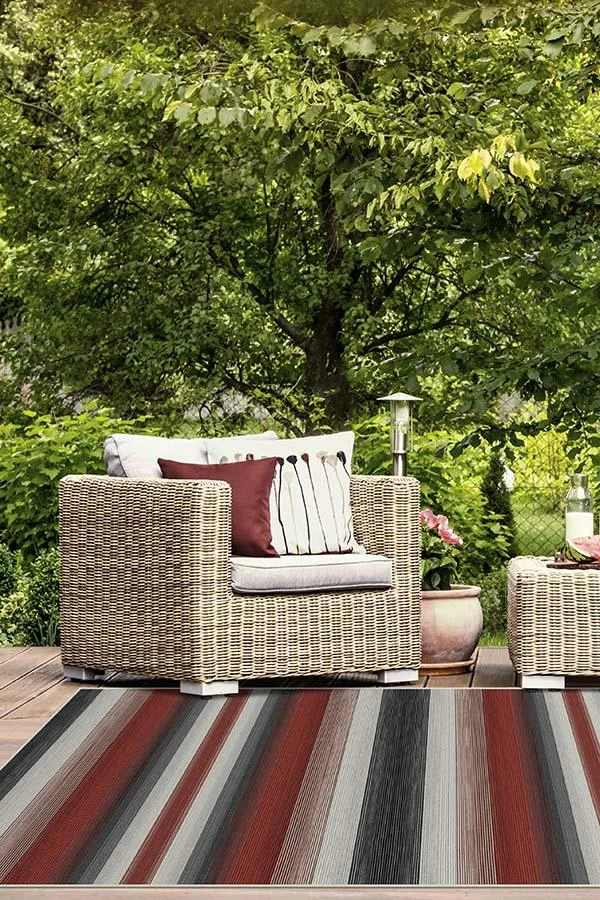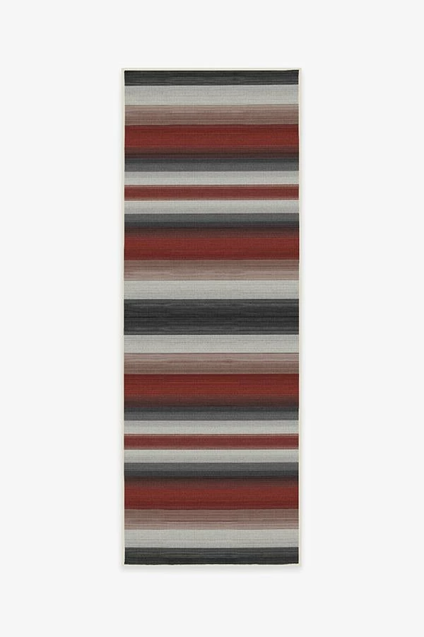 A classic pattern gets a colorful update. Our Serape Stripe Red Rug has a pattern of alternating lines in red, white, black, and grey with an ombre effect. The extra-durable, machine-washable material is perfect for both outdoor and indoor use, especially high-traffic areas and those exposed to the elements.