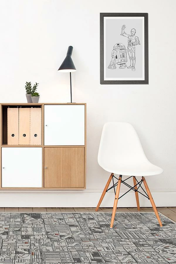 Journey through the outer reaches of the galaxy with our favorite Star Wars smugglers, Han Solo and Chewbacca, with our Smugglers Geo Grey Rug. Hand-drawn artwork in grey with pops of copper, this rug uses impressive linework to reveal an aerial view of the architectural surface and intricate modules of the Death Star, with a few subtle details from the Millennium Falcon hidden within.
