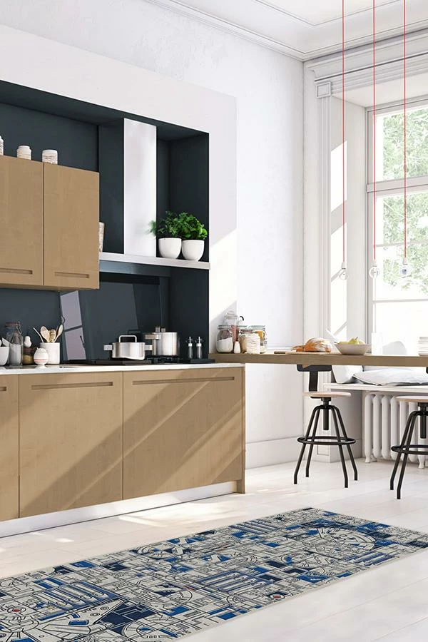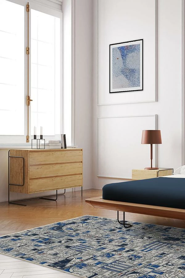 Immerse yourself in the intricate web of the Star Wars galaxy with our Smugglers Geo R2-D2 Blue Rug. Hand-drawn in iconic hues of blue, bone white, and a pop of rust red from your favorite droid, this rug uses linear and spherical shapes to reveal the inner workings of the Death Star, with a few subtle elements of the Millennium Falcon hidden within. Meticulously designed in startling details, this rug will surely be enjoyed by Star Wars fans of all ages.