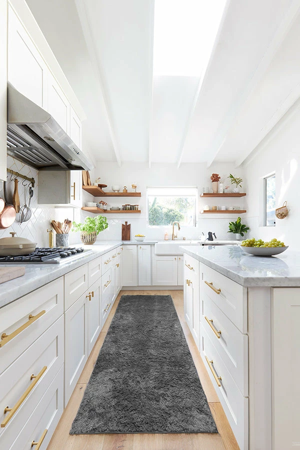 Sink your feet into luxurious softness with our stylish Stormy Grey Plush Rug. Made with a soft, machine-washable, and stain-resistant material, this high-pile rug radiates elegance with its cool grey color and teddy bear-like texture.