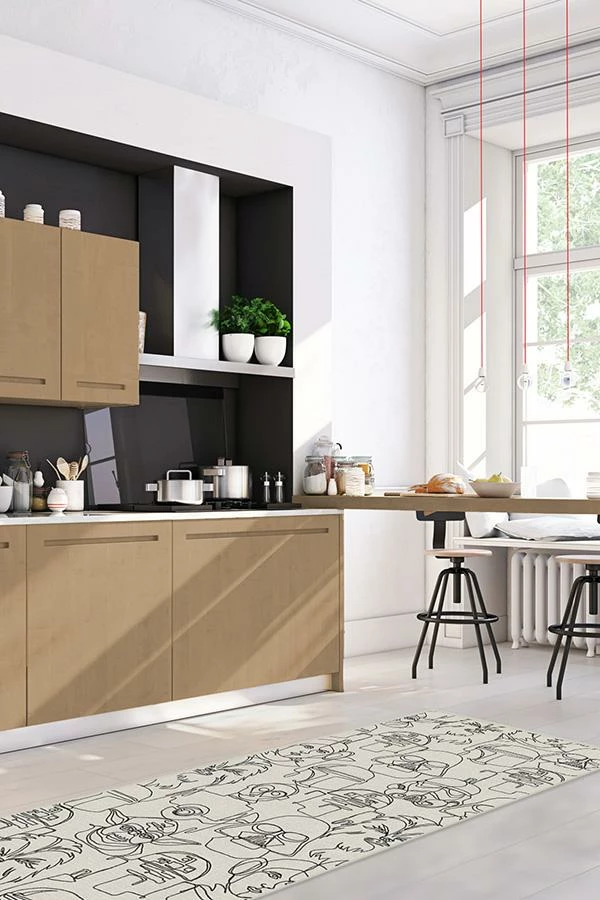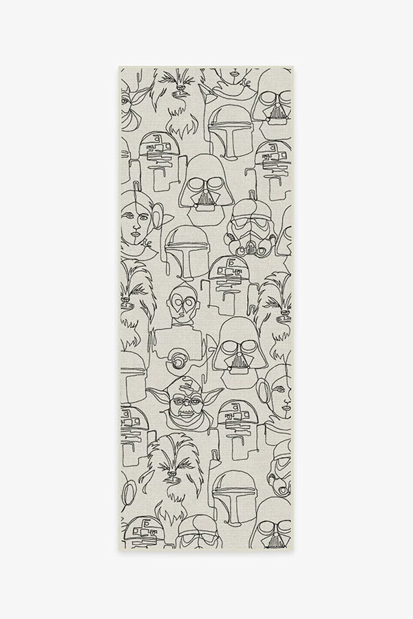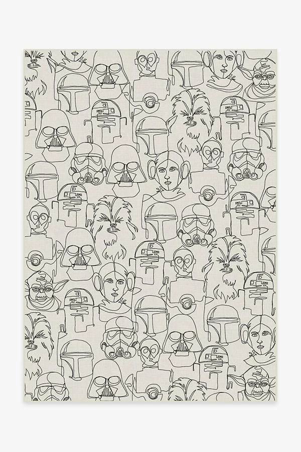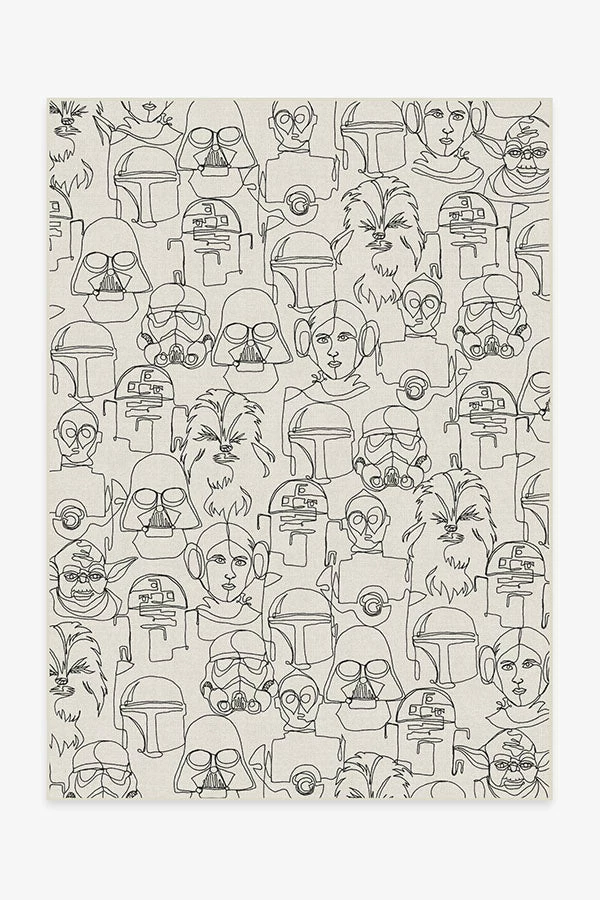 The Saga White and Black Rug brings together Star Wars’s most iconic characters. Rendered in classic black and white, this rug features portraits of Darth Vader, Princess Leia, C-3P0, R2-D2, Chewbacca, Yoda, Boba Fett, and Stormtroopers, artistically hand-drawn in one continuous contour line.
