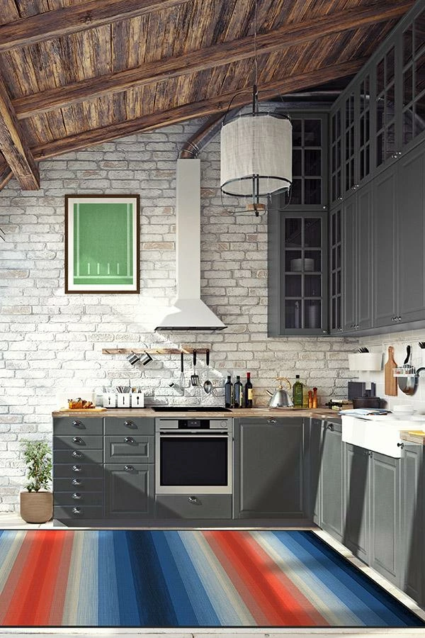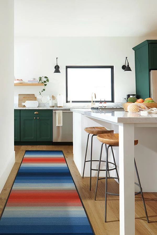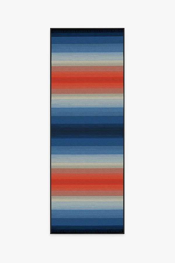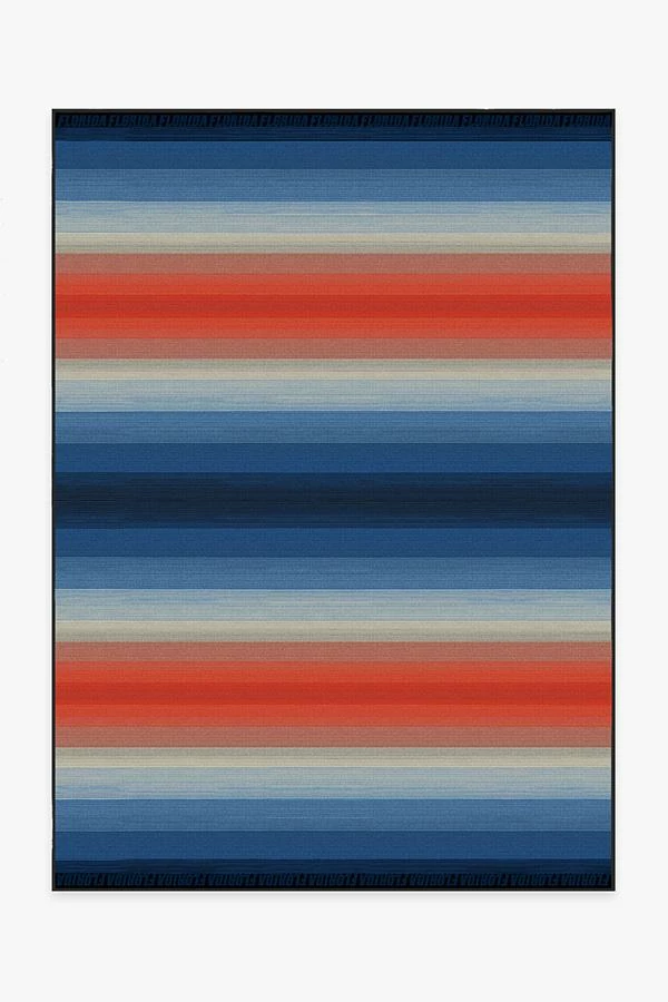 Go Gators! This University of Florida rug features an ombre striped pattern in the university’s signature shades of blue and orange, with the home state “Florida” subtly written on both ends. Water-resistant, stain-resistant, and machine-washable.