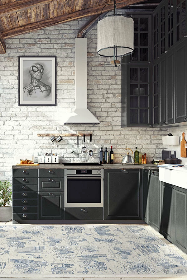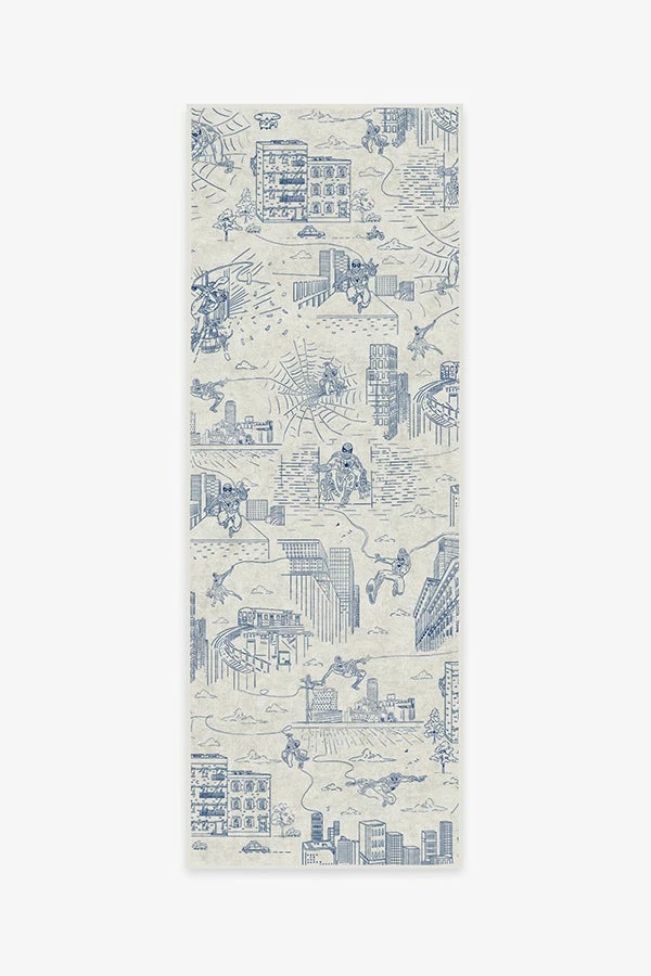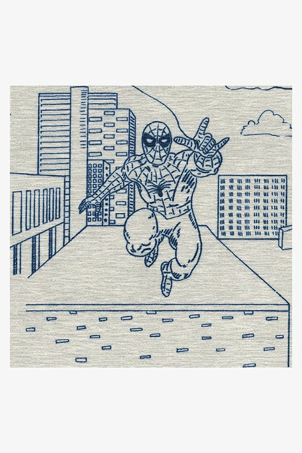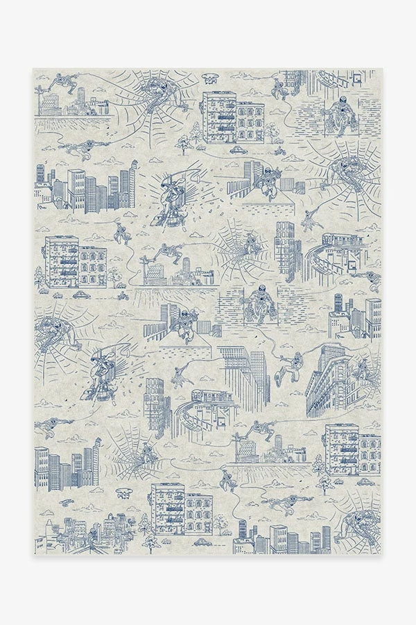 Soak up Spider-Man and the scenery with our Web City Ink Blue Rug. Inspired by the Super Hero’s adventures around New York City, this Marvel rug features a classic rendition of Spider-Man in a blue toile pattern on a creamy white background. Made from our water-resistant, stain-resistant, and machine-washable low-pile Chenille material.