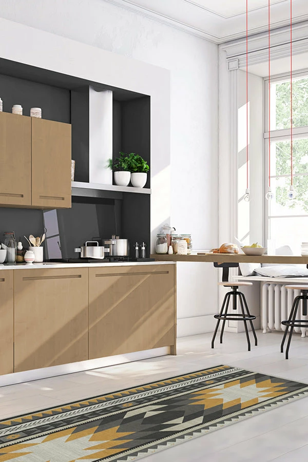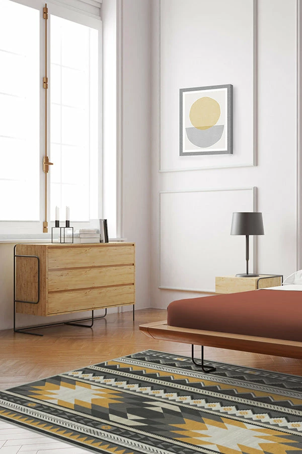 Our Yuma Yellow and Grey Rug is a brilliantly patterned statement rug with a Southwestern flair. Featuring geometric shapes tinted in high-contrast hues of neutral grey and yellow, this rug is the perfect accent to enliven any room in your home.